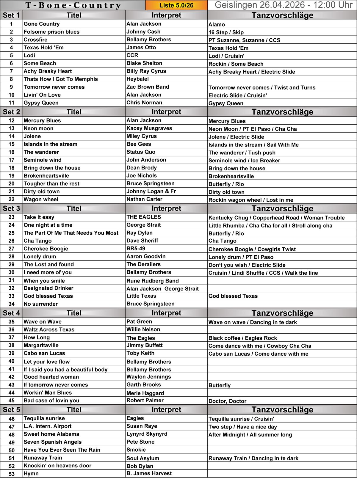 aus den größten Hits und Klassikern der Countryscene und garantiert für Stimmung und gute Laune!